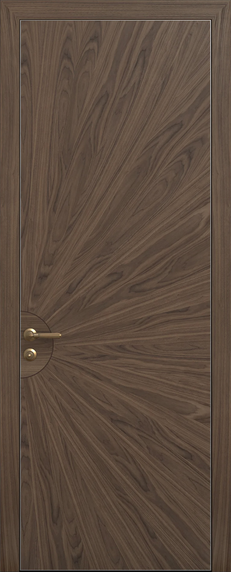 Межкомнатная дверь Elegance LgA 35-05 в современном стиле. Отделка - строганный шпон, цвет - американский орех тон 51, полотно толщиной 40 мм подходит как для установки с телескопическим или компланарным наличником, так и для скрытого монтажа. Доступно изготовление в следующих системах открывания: распашная, купе, magic, книжка, пенал.