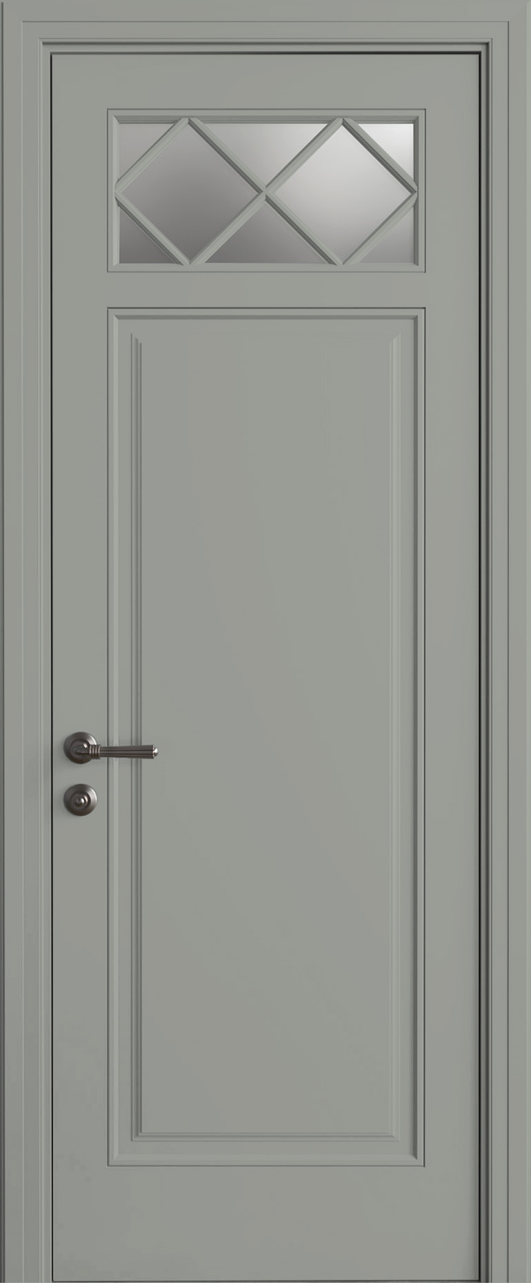 Межкомнатная дверь Камея ЛН21 в стиле прованс со стеклом. Отделка - эмаль, цвет - RAL 7035, полотно толщиной 40 мм подходит как для установки с телескопическим или компланарным наличником, так и для скрытого монтажа. Доступно изготовление в следующих системах открывания: распашная, купе, magic, книжка, пенал.
