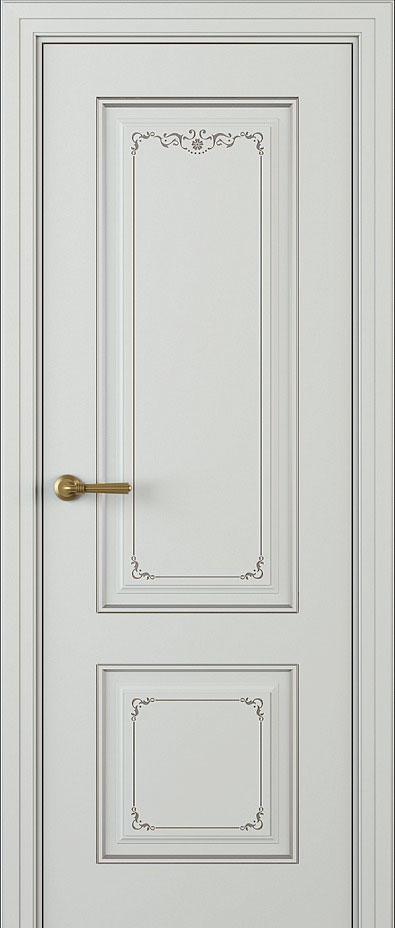 Межкомнатная дверь Камея ЛЧ13 в стиле прованс. Отделка - эмаль, цвет - RAL 7035, золотая патина, полотно толщиной 40 мм подходит как для установки с телескопическим или компланарным наличником, так и для скрытого монтажа. Доступно изготовление в следующих системах открывания: распашная, купе, magic, книжка, пенал.