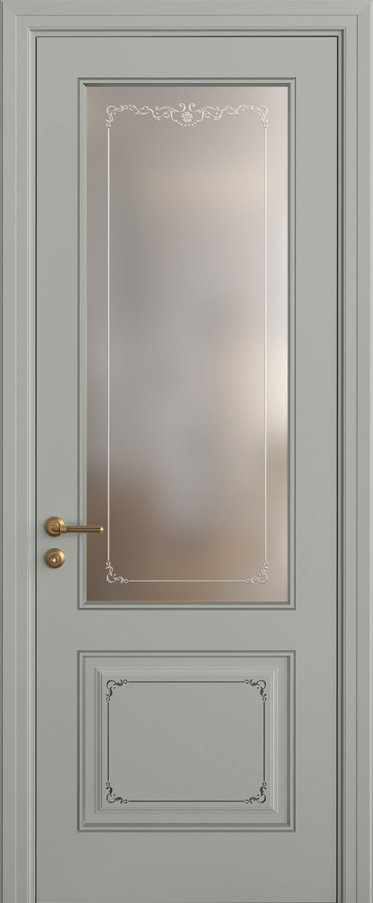Межкомнатная дверь Камея ЛЧ13-С в стиле прованс со стеклом. Отделка - эмаль, цвет - RAL 7035, серебряная патина, полотно толщиной 40 мм подходит как для установки с телескопическим или компланарным наличником, так и для скрытого монтажа. Доступно изготовление в следующих системах открывания: распашная, купе, magic, книжка, пенал.