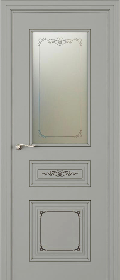 Межкомнатная дверь Камея ЛЧ53-С в стиле прованс со стеклом. Отделка - эмаль, цвет - RAL 7035, серебряная патина, полотно толщиной 40 мм подходит как для установки с телескопическим или компланарным наличником, так и для скрытого монтажа. Доступно изготовление в следующих системах открывания: распашная, купе, magic, книжка, пенал.