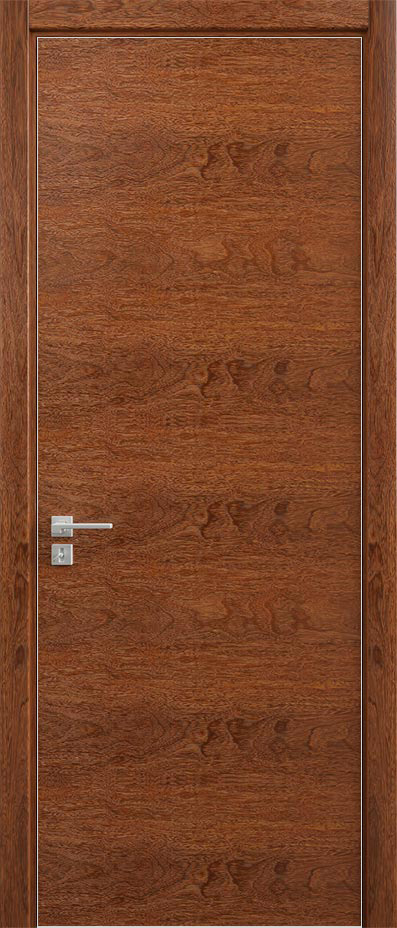 Межкомнатная дверь Практика БА10 в современном стиле. Отделка - строганный шпон, цвет - американский орех, полотно толщиной 40 мм подходит как для установки с телескопическим или компланарным наличником, так и для скрытого монтажа. Доступно изготовление в следующих системах открывания: распашная, купе, magic, книжка, пенал.