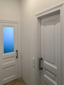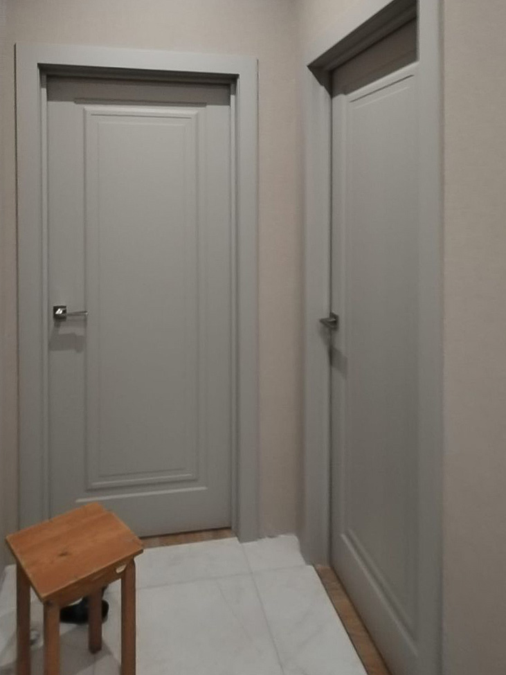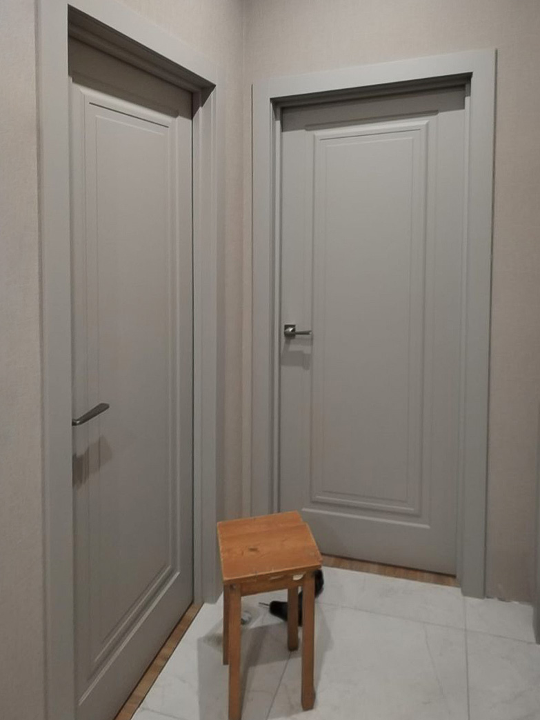 На замере мы учтём особенности ремонта, чтобы правильно подобрать двери и заранее учесть это при монтаже. Например, сделать побольше добор или сместить дверь в случае неровных стен